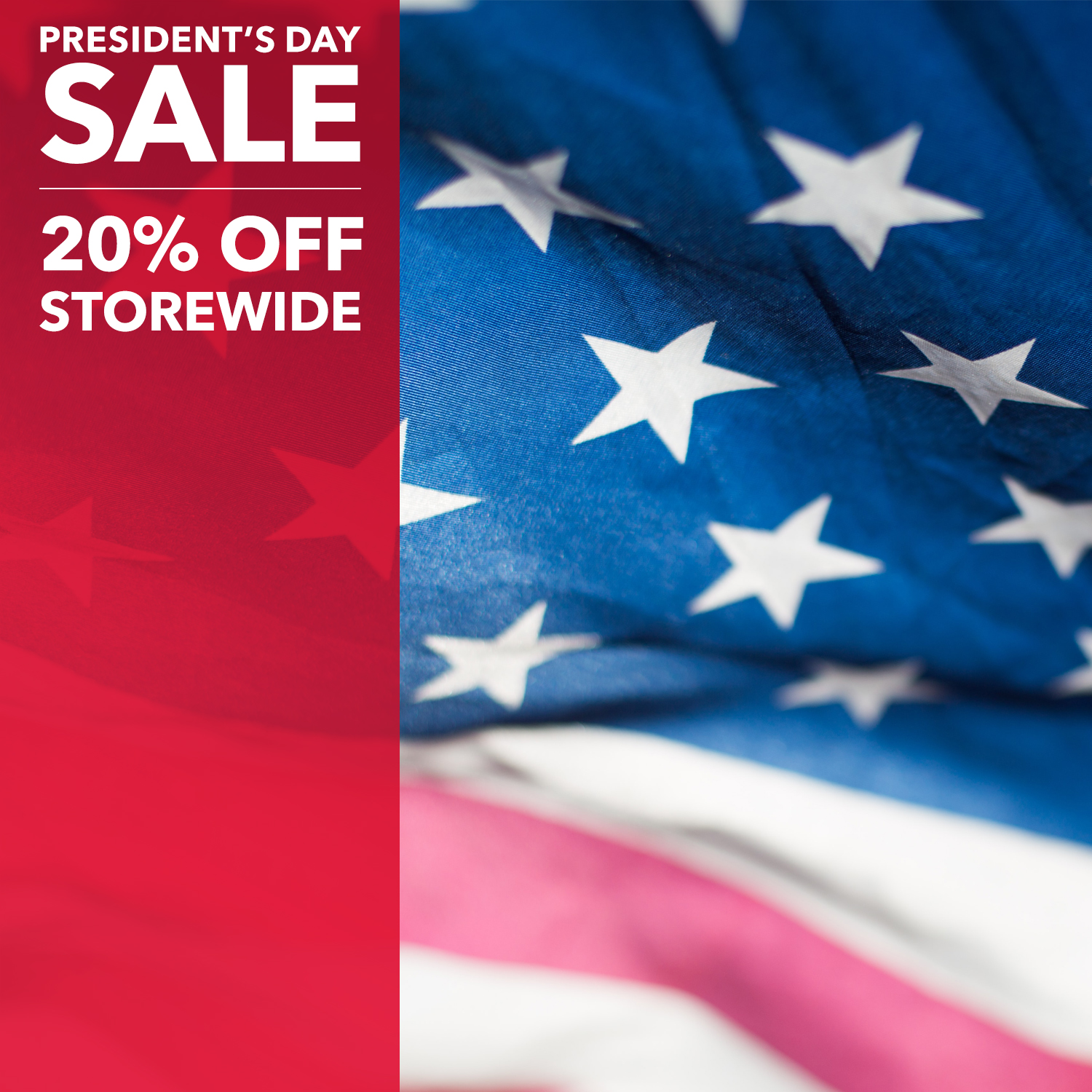 Shop Friday, February 13 and Saturday, February 14 to Save 20% Off during our President’s Day Sale.